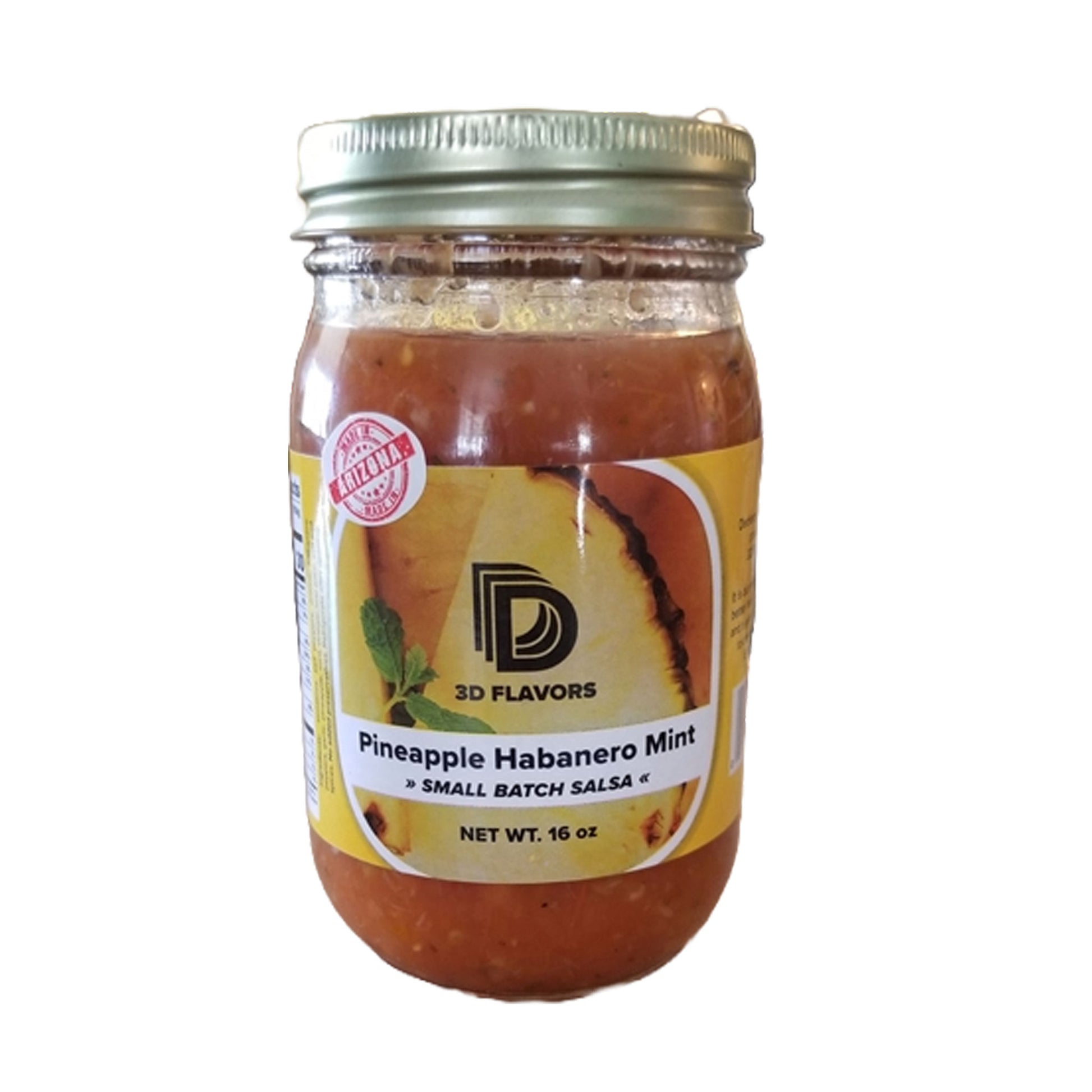 The folks at 3D Flavors Salsa believe that nothing is better than fresh ingredients and a genuine love for flavor! Made in Arizona in Small Batches using all fresh vegetables, the Pineapple Habanero Mint Salsa is a sweet and spicy, semi-smooth blend of tomatoes, bell peppers, garlic, habanero and spices. 16 oz Jar with high level of heat.