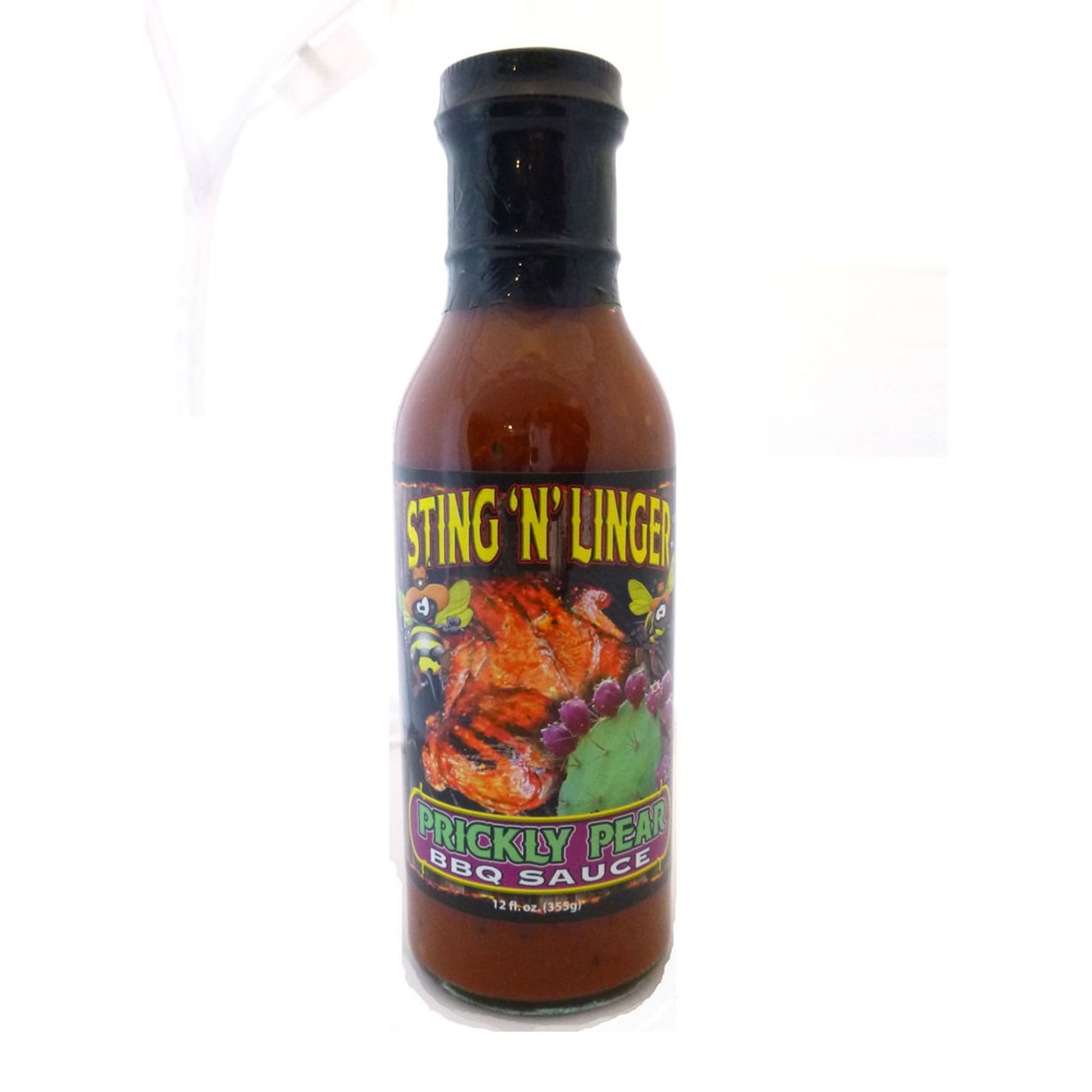 Barbecue sauce sweetened with Prickly Pear from Arizona's own Sting N Linger! This tangy bbq sauce uses prickly pear cactus fruit, which is described as watermelon, kiwi, strawberry-esque flavor, is used to sweeten up this cookout classic.